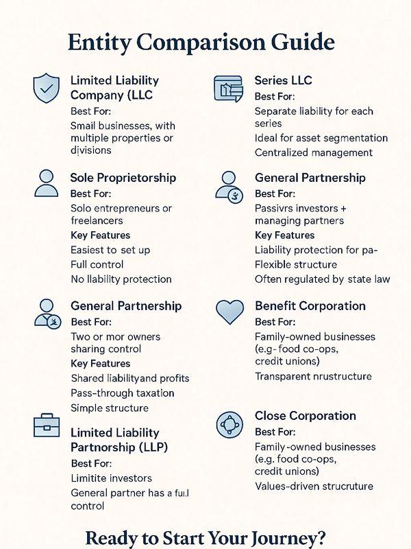 “Each business structure offers unique benefits. Use this chart to compare and choose the one that fits your goals.”